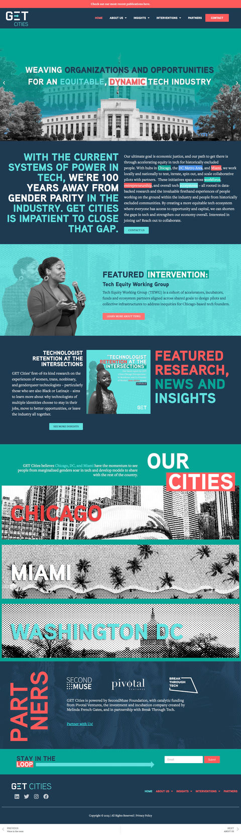 We had recently revamped GET Cities' brand identity, so this site was all about bringing that vision to life online. From bold gradients and halftone photo treatments to thoughtful layout choices that guided the user journey, every detail was intentional. The result? A site that not only reflects the movement and momentum of GET Cities, but also makes it easy for visitors to find what they need—and feel inspired while they do it.